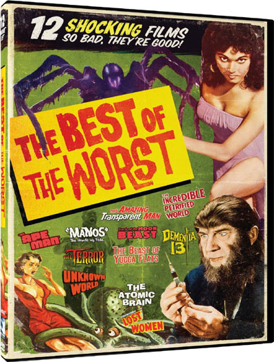 From Mill Creek comes a dozen horror and fantasy films so bad you’ll want to eventually claw your eyes out. You could call this a compilation of films from the “Mystery Science Theater 3000” gallery. Except without the hilarious commentary to ease the pain. If you’re interested in owning these films sans the commentaries, it’s here for the taking!