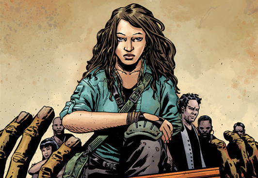 Did the show affect the comic book, or did the comic book affect the show? That’s something I’d love to know down the line, since Robert Kirkman didn’t just help reboot the series after the season four finale of “The Walking Dead” TV show, but he rebooted the entire damn series, period, in issue 127 of “The Walking Dead”! Not only does it have a brand new scheme and has been set on a whole new course, but damn it, it’s set two years in to the future, and even has a new logo. A new logo!