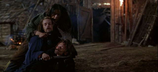 Scream Factory gives “Ravenous” a really good treatment for fans of the underrated horror comedy, offering another of their reversible covers for the Blu-Ray. There’s a great audio commentary with director Antonia Bird, and Composer Damon Albarn, both of whom discuss the perils of working in the wilderness, and how Albarn concocted his very odd but haunting score. There’s a second commentary with Screenwriter Ted Griffin and co-star Jeffrey Jones, a somewhat lackluster offering with occasional dead air and nothing really interesting mined.