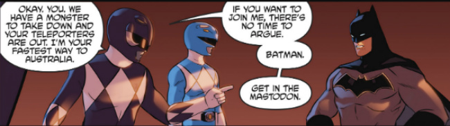 After splitting up, Zack the Black Ranger finds Alpha and brings him back to the command center only to discover that Zedd has sent a fake Alpha 5 that is packed with a massive bomb inside. When Alpha explodes, Zedd invades prompting a massive battle, but a guilt ridden Zack grabs Zedd teleporting him out of the command center. Sadly their teleportation capabilities are damaged and they’re both zapped in to another dimension. Said dimension is the DC universe, and Zack finds himself confronted with the Dark Knight, who is the first to meet him and assumes he’s has ill intent. Zack, who is often led by his anger and short fuse, doesn’t take kindly to his assumptions and goes toe to toe with Batman. Like most crossovers, both teams assume the worst in the other and we get to watch some interesting fights including Black Ranger battling Batman, the Red Ranger taking on Flash, and Wonder Woman crossing paths with Superman.