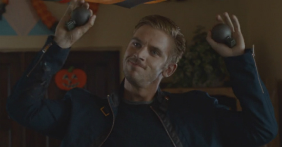 Most recently I caught “Class of 1999 II: The Substitute” in which Sasha Mitchelle plays a robotic like substitute teacher who believes the best way to discipline students is by snapping their necks and reducing them to corpses strewn around his school. “The Guest” is shockingly similar in tone and premise, where we meet the perfect soldier who is dedicated to his mission above all else. Dan Stevens is fantastic as a charming, good looking, and very valiant war veteran who arrives at the door step of the Peterson Family one unexpected afternoon. Known as David, he’s a blue eyed, blond young man who is more than happy to ingratiate himself among what becomes his surrogate family. And soon enough he even begins to insinuate himself in to their lives.