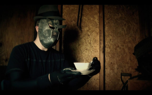 It helps that if you’re going to feature a character from your previous movie that you kind of inform the viewer what movie the character is from. Upon researching I learned the maniac in this short is from David Kolenski’s previous short “Blackbags” which I’d never heard of. This pseudo-sequel follows the maniacal Meathead, a killer with a metal mask who holds a girl named Tina hostage. After forcing her in to a cup of tea, he makes her roll a joint for him. If he loves it, she can go, if not, she’s dead. He gives her three ties, to boot. “High Tea” is unpleasant, and not very well made. The sound design is iffy at best, and not much makes sense here. I guess folks that love or remember “Blackbags” will enjoy it more due to context, but I just didn’t enjoy a single minute of it. If anything, Meathead’s mask is pretty cool.