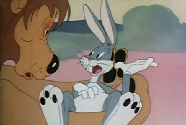 The set up is that Leo the Lion is a middle aged lion is mocked by his animal friends for being over the hill and lazy. Angered by their relentless taunting he challenges them that he can kill any animal. Even a rabbit. So he ventures out in to the jungle looking for a rabbit to eat, and he inevitably comes across Bugs Bunny. Bugs is, of course, just minding his business and has to fight off Leo, who is dead set on killing him. Bugs sees this as an opportunity to teach him a lesson and he puts the predatory cat through the wringer time and time again. There’s a hilarious gag involving a door where Bugs plays the Lion’s sense of dimension, and a great moment when the pair stop fighting for a moment to break down in to hysterical laughter.