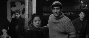 The cinematography around the story and the cast is a beautifully stark black and white that shows an understanding for using both light and darkness to build a location or to make a scene. The work by Makoto Tsudoi (as Makoto Tsuboi) shows an understanding of images, moving and static, an understanding of lighting, and a mastery of framing. This is one beautiful, stark black and white, looking film.
