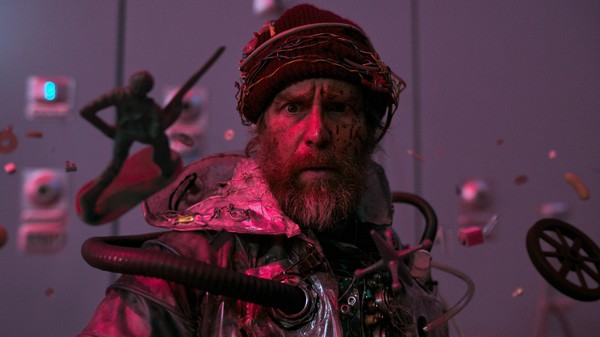 Good Luck, Have Fun, Don’t Die is all about the terrors and dangers of Artificial Intelligence, as so many films are today. But the way it does so is a satirical madness of invention and innovation. But it’s more than a “uh oh AI”, but a satire of the modern world, exploring our reliance on technology, becoming doomscrolling zombies, violence in our schools, disconnection from one another, and more. The script by Matthew Robinson, who previously wrote Love and Monsters, deftly introduces a plethora of ideas, themes, characters, the world, and movements, building a beautiful balance, shifting and changing. It’s irrelevant and wild, rushing (in a good way) through so much. Darkly funny, surprisingly tellingly, poignant at moments, coldly chilling in the world it’s building and fear of what might come. There’s a simmering, vast, unknowable nature to how the AI plays that is wonderful to take in as it comes fast and furious.