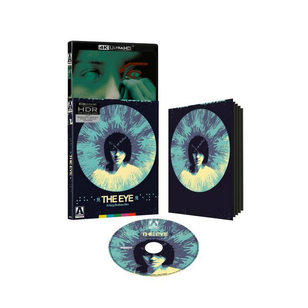 Arrow presents The Eye on a single 4K disc with no Blu-Ray option. The disc features an eerie image of Lee with ghostly hands reaching for her. The said image, new to this release by Tommy Pocket, is also one side of the reversible sleeve. The other is the original poster. Inside is a collector’s booklet. The package slides into an O-ring with the new artwork.