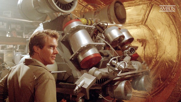 In front of the camera, Dennis Quaid leans into the dashing, but troubled, hero type, filled with a bravado that, while it might be tarnished with alcoholism and regret, still shines as a chisel-jawed foil to his main cast mate and body sharer, Martin Short. Short, a gifted physical comedian, gets to do some of his best work as the nervous grocery store clerk, dealing with a miniature man (or two!) and the physical ailments that come with that. Meg Ryan, using her sheer America’s Sweetheart to its best effect in one of her earliest roles, carries the emotional heft and, while often playing the receiver of Quaid and Short’s antics, acquits herself wonderfully. Let’s not forget Dante’s best regular, outside of the Dick Miller cameo, in Robert Picardo. Picardo, as a hired goon known as The Cowboy, is having his best life, working the silly and over-the-top. Big fun in another awesome goon in Vernon Wells. Keep an eye out for a few of Short’s SCTV friends in cameos. And can’t forget Kevin McCarthy as the villain. With this and UHF, he’s awesome at this sort of thing, with the Snidley Whiplash villainy energy. I want to give a special shout-out to John Hora as hapless scientist Ozzie. Normally a cinematopher (often with Dante), he was replaced by Andrew Laszlo, but Spielberg and Dante thought he’d be perfect. And he was. Love the guy.