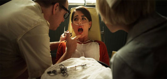 Director Ryan Spindell’s short horror film is something of sheer brilliance if only for the fact that he perpetuates the horror of the dentist. Going to the dentist is something no one enjoys doing and “The Root of the Problem” plays upon that fear by taking a young woman and putting her in to the hot seat of delirium and what may or may not be a heinous plot to take her wisdom teeth.