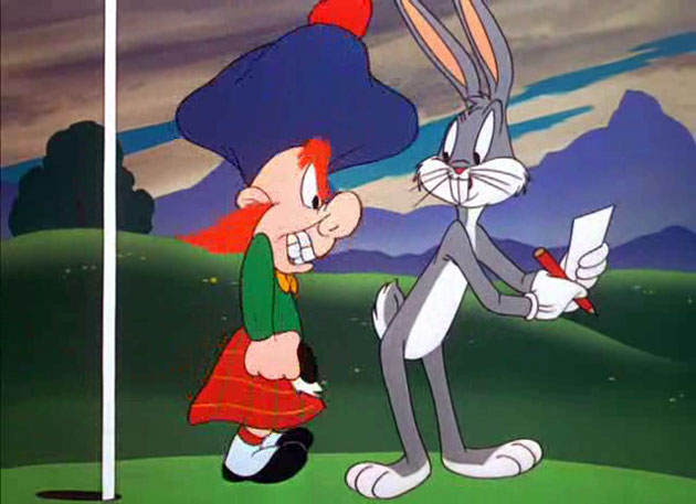 In my head canon, since Bugs, the Coyote and Road Runner are in the same universe, and they all shop from ACME. Their prices depend on whether their devices will work, so while Coyote is buying junk, Elmer Fudd ends up buying high priced machinery to hunt for potential prey. Hence the machine that he’s seen carrying in the opening of the short which can best be explained as some kind of radar for prey that also includes a screen for them. The machine does work, but Bugs ends up catching on way too early for Elmer’s liking. I know, I know, Elmer points to it as “Awmy Surpwuss!” but who’s to say ACME doesn’t have that kind of department for hunters and predators?